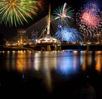 Winnipeg stock photography: New Years Eve fireworks at the Forks 2014